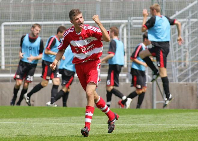 一切缘起于2000年,彼时10岁的小穆勒进入拜仁慕尼黑青训,从此开启了一段传奇之旅。以埃尔伯为偶像的穆勒在青训梯队中稳步上升,曾代表U19梯队在26场比赛中打进18球,初现射手本色。2008年,穆勒开始代表拜仁二队出场并于2008-09赛季随队征战德丙联赛。首轮面对柏林联,穆勒就为球队先拔头筹,从此火力持续不减,整个赛季下来,他在32场联赛中打进15球。当然,更大的期待和惊喜已经留给了拜仁一线队。