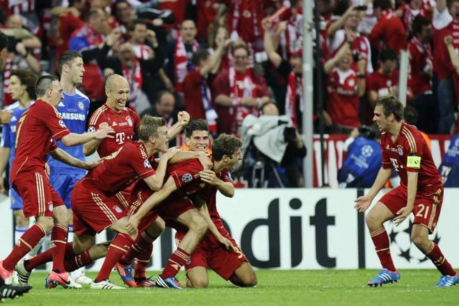 在2010年欧冠决赛铩羽而归后,拜仁慕尼黑在2012年再次距离欧冠奖杯仅一步之遥,这一次他们甚至有机会在主场安联球场完成捧杯。比赛第83分钟,托尼·克罗斯长传至门前,无人盯防的穆勒拍马赶到,头球砸地后弹入切赫把守的大门。穆勒和队友们忘情庆祝,在那个时间点,他似乎已经看到了欧冠冠军在向其招手。然而几分钟后,已经被替换下场的穆勒在替补席上见证了德罗巴的绝平进球。随后,罗本在加时赛中主罚的点球被扑,点球大战中奥利奇和施魏因斯泰格罚失,年轻的穆勒再次品尝到了欧冠决赛失利的苦涩,那一赛季,拜仁在联赛、杯赛和欧冠三条战线皆是亚军。